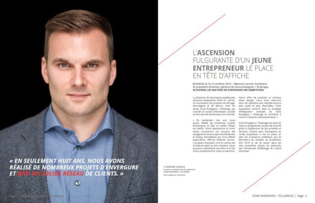 Maxime Lacroix, fondateur et pdg de Zone Enseignes + Éclairage, se donne les moyens de surpasser ses ambitions